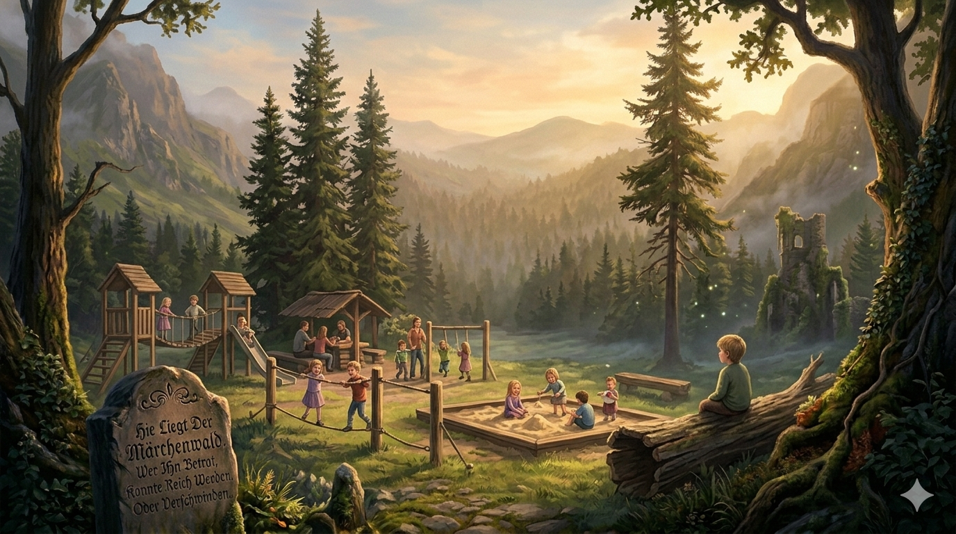 So geschah es an einem warmen Nachmittag auf einem Spielplatz am Rand eines alten Waldes.