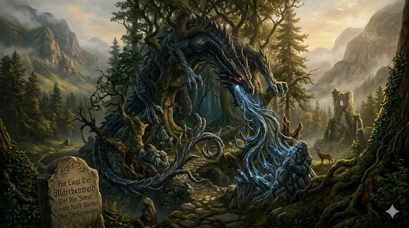 Vor sehr langer Zeit, als Wälder noch tiefer waren und Wege sich manchmal über Nacht veränderten, lag zwischen den Bergen ein Wald, den die Menschen nur leise beim Namen nannten.